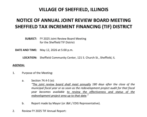 Partner with Sheffield for a new sidewalk in front of your property! The Village of Sheffield reimburses up to $5 per square foot to property owners participating in the program.…