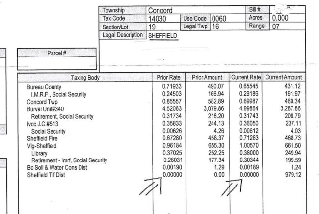 Real Estate Tax bills for tax year 2018 payable 2019 have been sent out by the Bureau County Collector. Please note that although the Sheffield TIF District is listed under the “Taxing District” column, the TIF District is not a taxing district. There is no additional tax rate applied to your bill as a result…